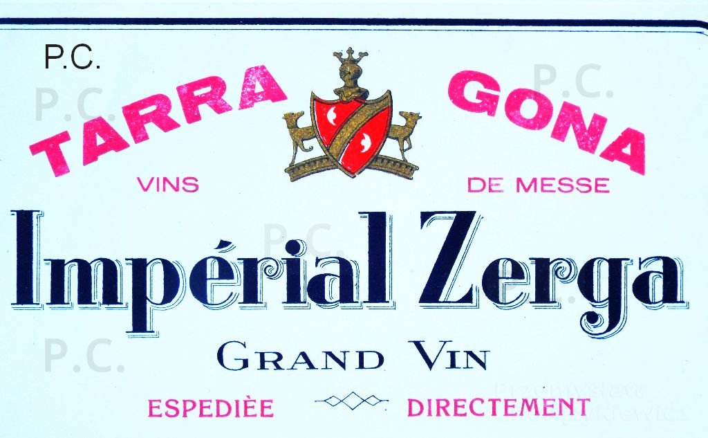 Tarra Gona Vins De Messe Imperial Zerga Grand Vin Espediee Directement a Monsieur T. Cieśliński Przemyśl Mis en Bouteille par l'Importateur.