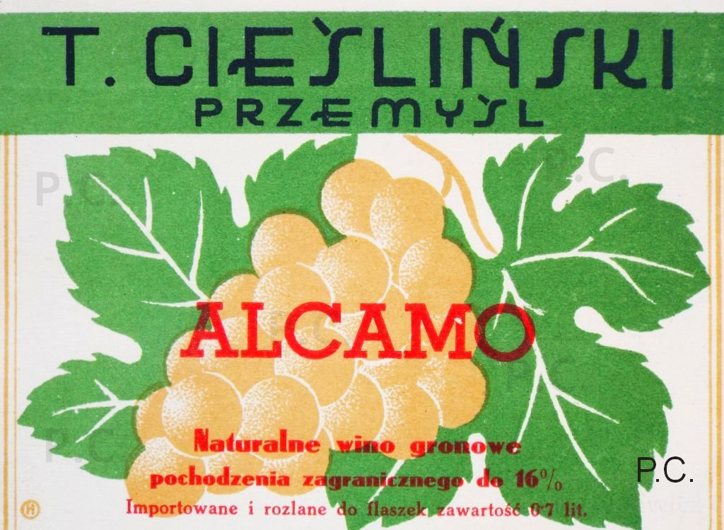 T. Cieśliński Przemyśl Alcamo Naturalne wino gronowe pochodzenia zagranicznego do 16% Importowane i rozlane do flaszek zawartości 0.7 lit. Wino Gronowe Zaprzysiężony dostawca win mszalnych.